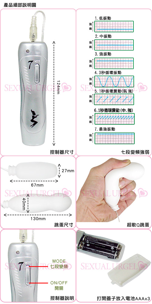 .商品尺寸:控制器約:124mm;長蛋約:130mm*40mm;短蛋約:67mm*27mm