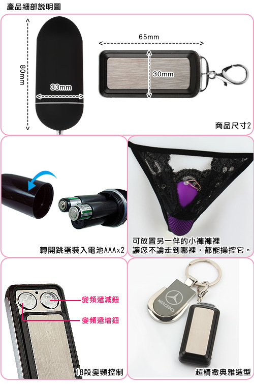 .時尚新潮的汽車遙控器造型加上雙按鍵遙控設計,是目前市場上絕無僅有的高檔無線遙控跳蛋
