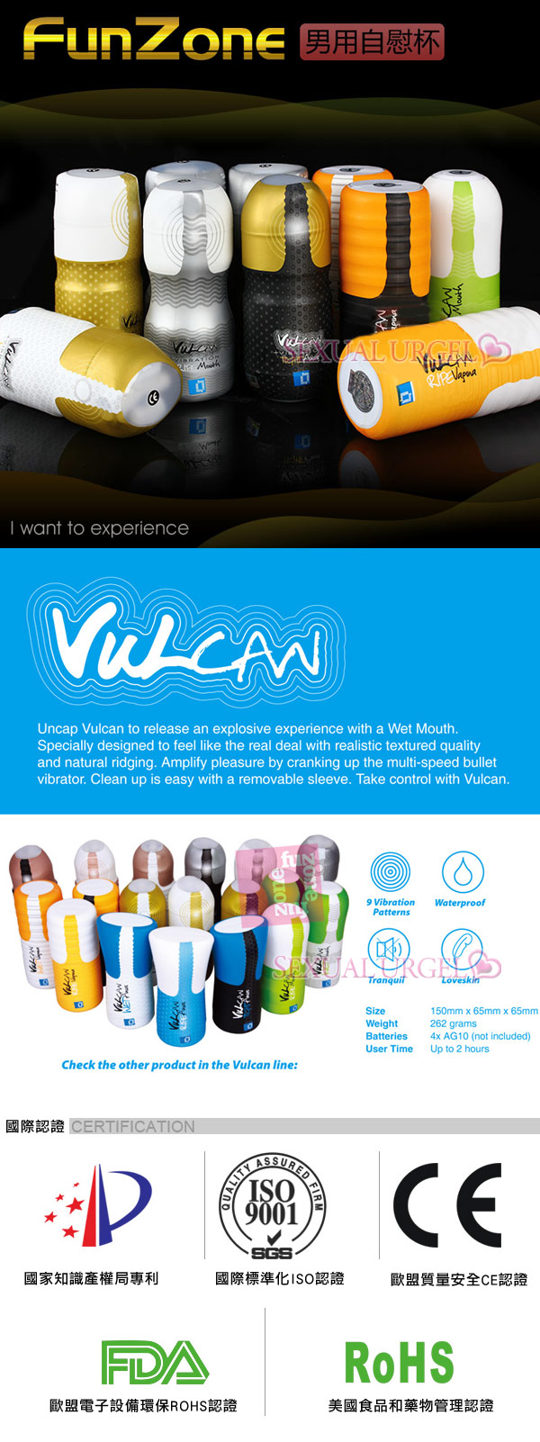 Vulcan系列共9款,分别模擬了少女、淑女、熟女的嘴巴、陰部、後庭多種性愛,情景體驗