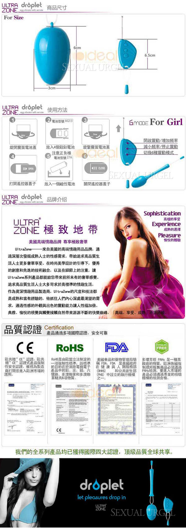 .主商品:美國 Ultrazone Droplet dew drop 夢幻滴露 創意變形 遙控跳蛋 水藍x1