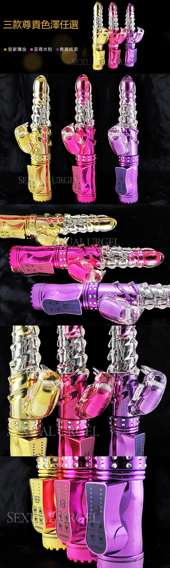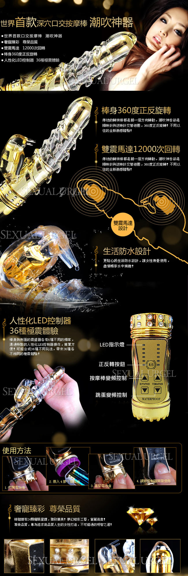 日本傲視皇者-潮吹神舌36段變頻防水按摩棒-皇家臻金