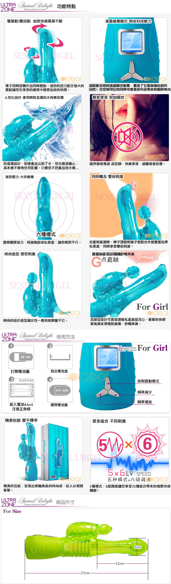 .主商品:美國Ultrazone-Seal Delight 海豹突擊隊 5x6變頻液晶旋轉按摩棒 x1