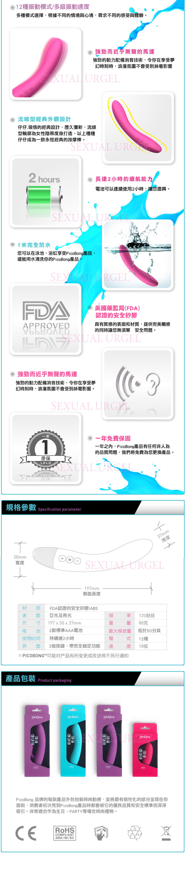 Picobong情趣玩具,每款玩具不僅防水,而且便於旅行時攜帶。Picobong品牌正迅速為年輕人熟知,Picobong致力於研發出更多功能性強、充滿時代氣息並充滿時尚元素的產品。