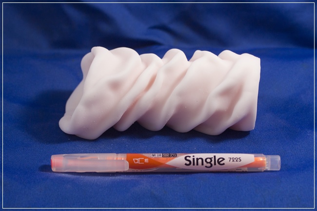 和傳統的名器外圍多半是圓弧光滑狀相比 ,小花的外型充滿了歷經鍛鍊的不規則肌肉線條。