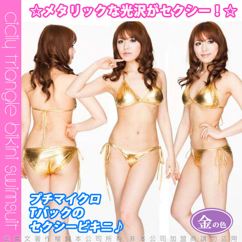 .主商品:虐戀精品CICILY-豪乳爆爆 塗膠仿皮 兩件式比基尼-金*1