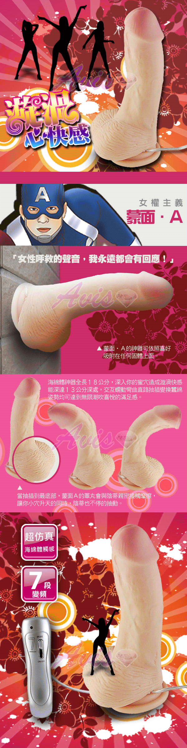巨屌者聯盟 性愛隊長 蒙面A 海綿體觸感 7段變頻高潮神器(強力吸盤 贈精液潤滑液150ML)