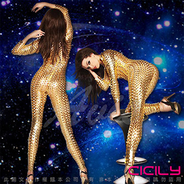 .主商品:虐戀精品CICILY 海中女神 洞洞裝 塗膠仿皮性感彈力連體緊身衣-金 *1