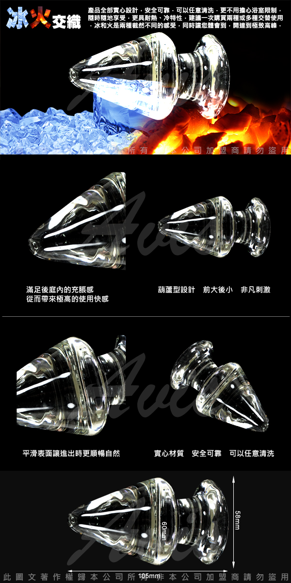 .商品名稱:GLASS 重量級 熒彩妖精 肛塞 玻璃水晶後庭冰火棒 Anus 34*1