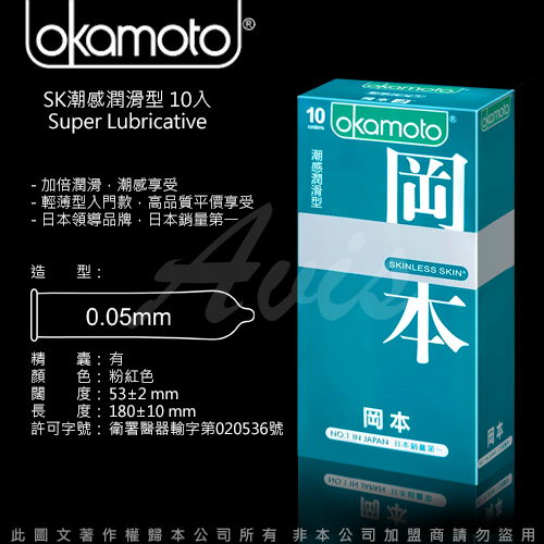品名:Okamoto岡本 Skinless Skin 潮感潤滑型保險套(10入裝)