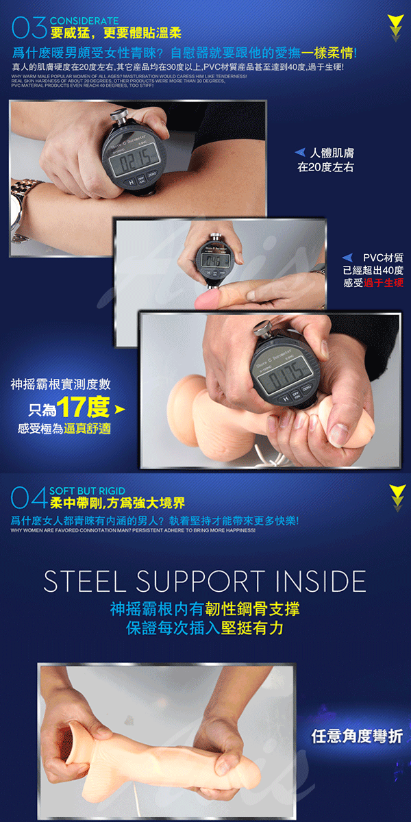 神搖霸根內有韌性鋼骨支撐,保證每次插入堅挺有力
