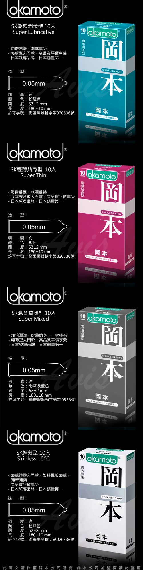 【保險套大特賣】岡本OK Okamoto Skinless系列保險套超值組 蝶薄+輕薄貼身+潮感潤滑+混合潤薄(4盒/組)