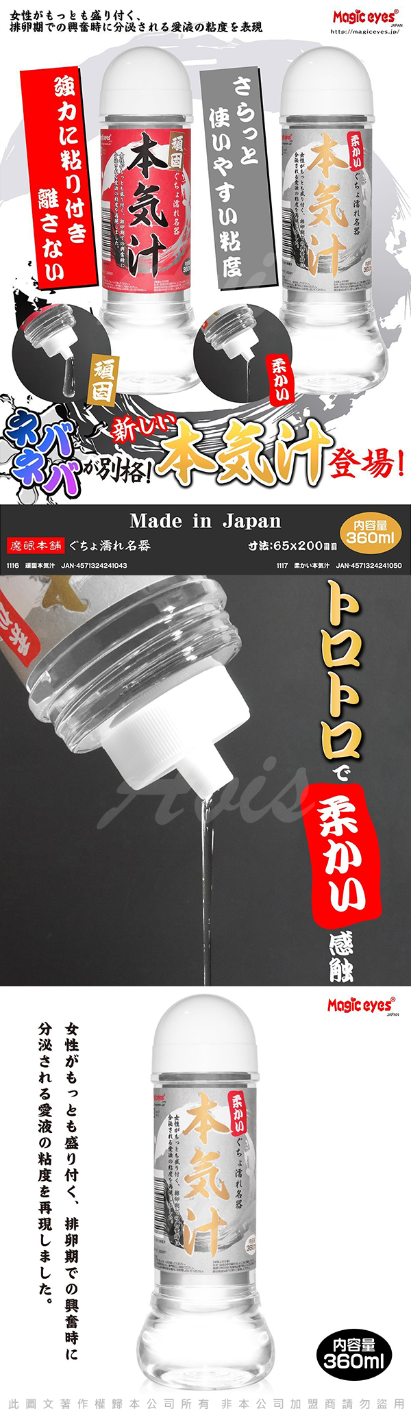 .主商品:日本Magic eyes 本氣汁潤滑液 360ml 細柔觸感 白 X1