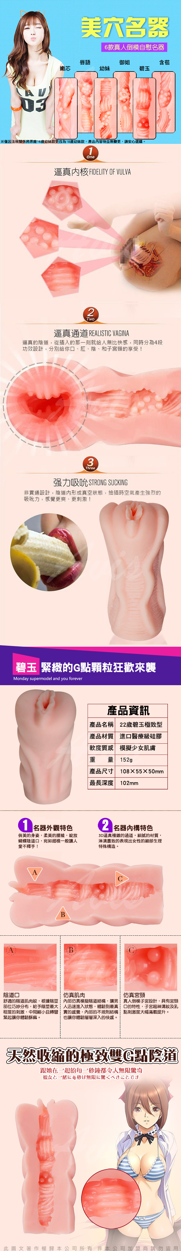 ![]() .主商品:美穴名器 仿真吸夾 自慰器 22歲碧玉 *1