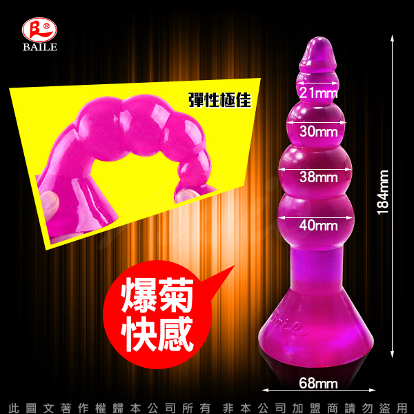 設計珠與珠之間的等距,當一顆一顆,慢慢塞入,本身產生自然縮放,等待就緒後,蓄勢待發,一次拉出,一股莫名的快感湧上心頭,奇妙無比,每拉出一粒,撐開括約肌時所得到的快感直衝腦門,如此不斷重覆進入再拉出,一次又一次的快感衝擊絕非言語可以形容,您還在等什麼麼,快來嘗試看看吧!