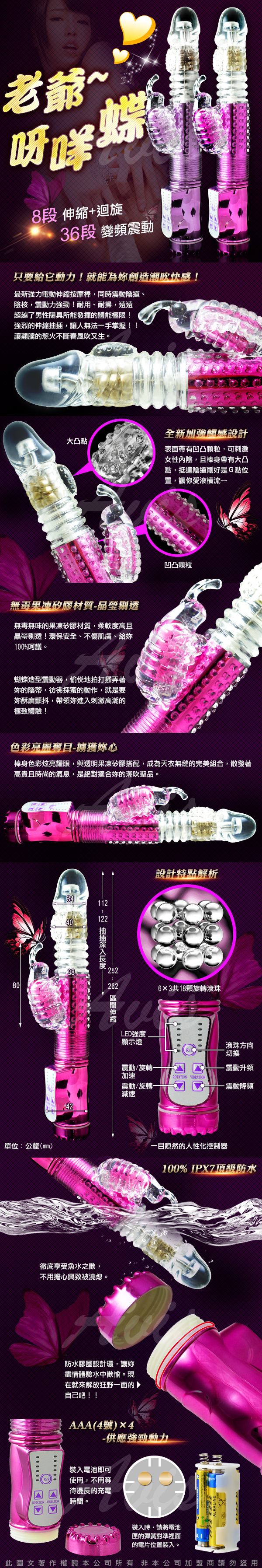 .商品名稱:淫亂若蝶 288段變頻 滾珠伸縮式 正反轉 按摩棒 玫瑰粉*1