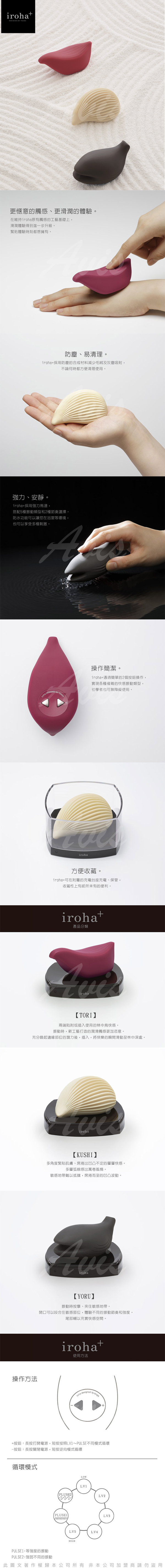 以可愛和風造型及柔軟手感作賣點的Iroha系列推出全新作品。採用軟觸感材料造,表面光滑且具細膩觸感。與肌膚配合度高,不會有黏膩或不自然的感覺 - 就像你的另一層肌膚