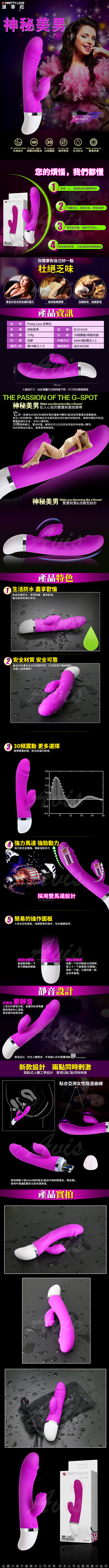 使用頂級硅膠材質製成,外觀漂亮、時尚、動感、大方、靜音、符合人體工學設計,高強度刺激陰道內部,更容易找到G點敏感處,給予最直接強力的剌激,靜音馬達設計,共有30頻震動模式可供自已隨意選擇,細膩光滑的棒身設計