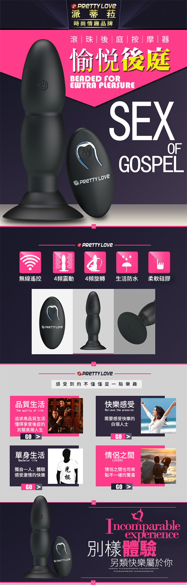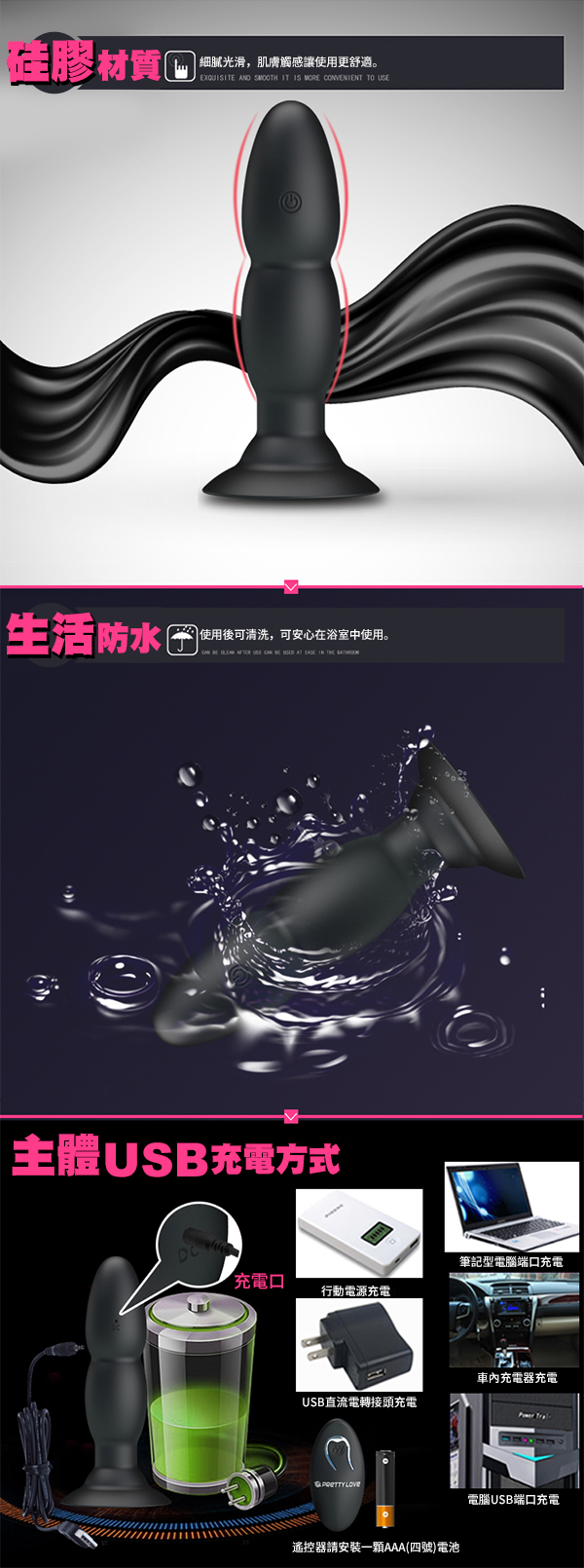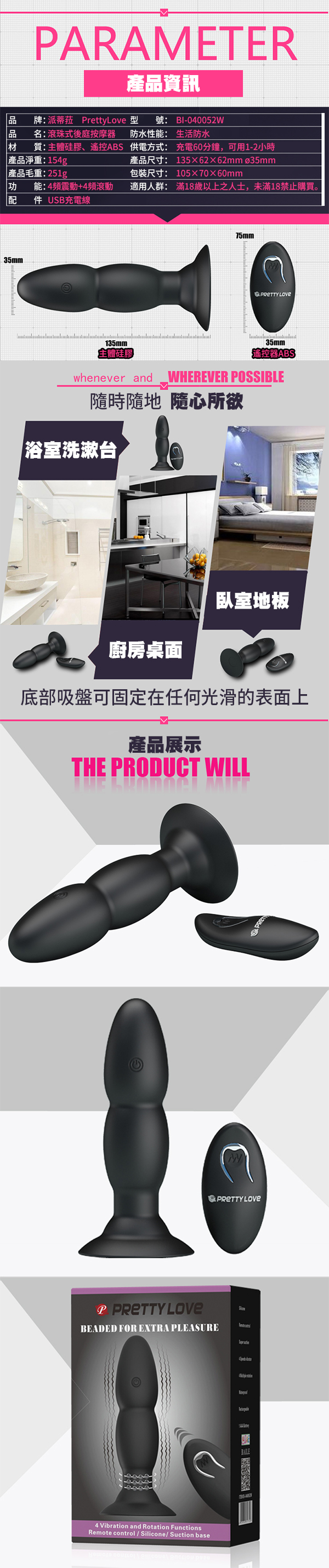 .商品名稱:PRETTY LOVE-愉悅快樂USB充電遙控吸盤後庭棒-4頻轉珠+4頻震動