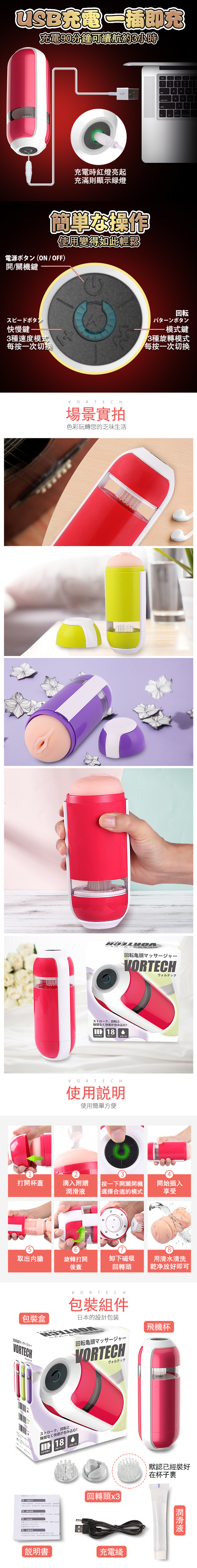 .商品內容:日本RENDS-VORTECH 龜太郎 回轉龜頭刺激USB充電電動自慰器