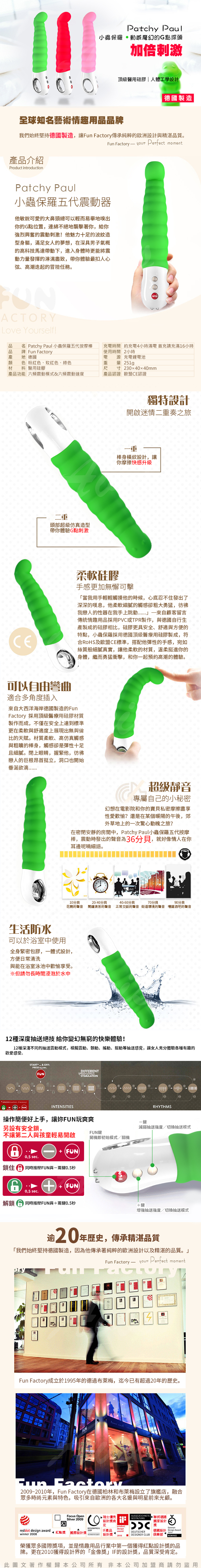 .商品名稱:德國FUN FACTORY Patchy Paul G5 小蟲保羅 五代時尚奢華按摩棒 粉