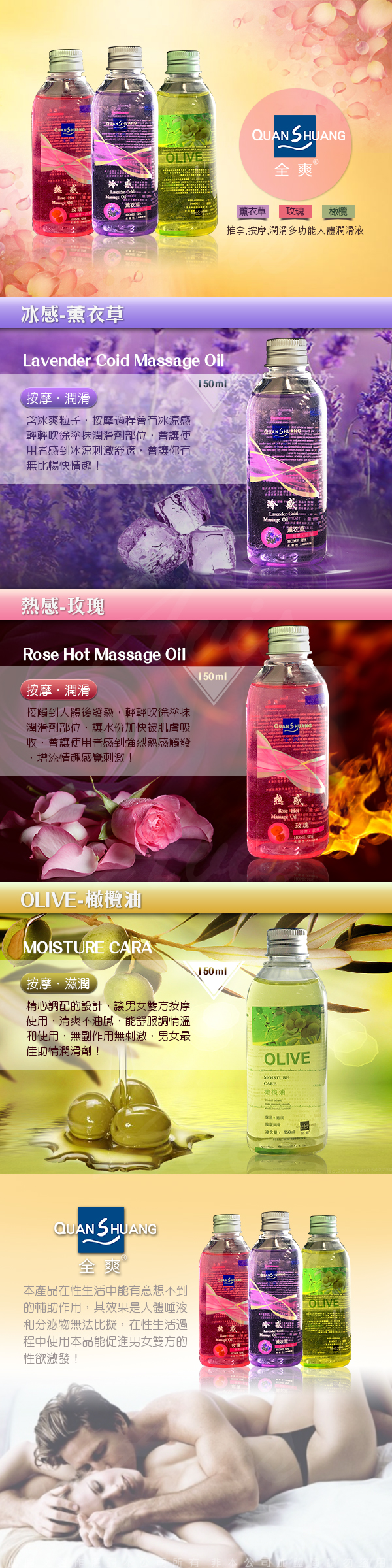 .主商品:Quan Shuang 性愛生活 按摩潤滑油 150ml 冰感 薰衣草