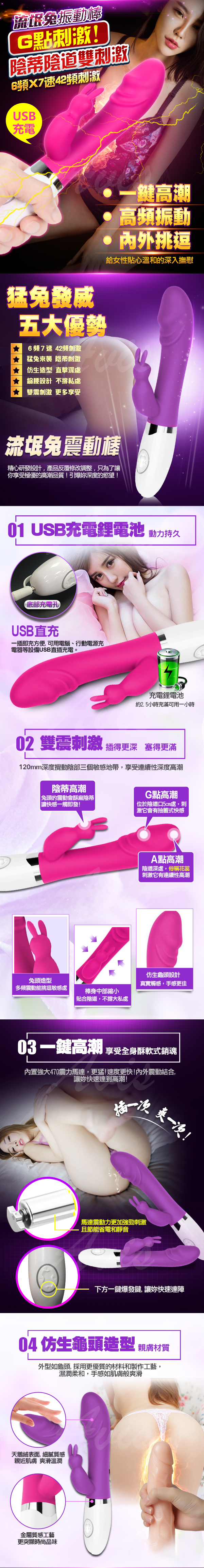 .主商品: 流氓兔 7X6變頻震動USB充電G點按摩棒