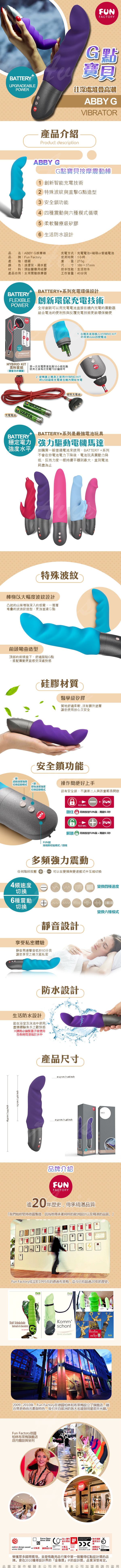 .商品名稱:德國FUN FACTORY ABBY G G點寶貝 時尚奢華按摩棒 紫