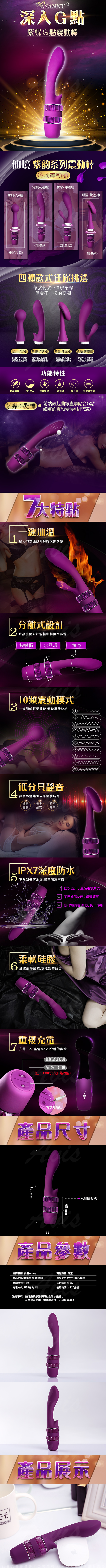 Sanny仙境-R1紫蝶 一鍵加溫 10段變頻 G點震動按摩棒 可多頭替換