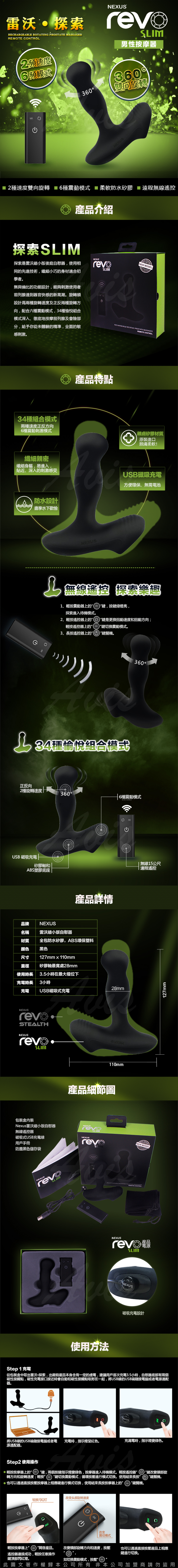 .主商品:英國NEXUS REVO Slim 雷沃四代 探索 無線遙控 男用後庭按摩器旋轉後庭G點肛塞(磁吸式充電型)