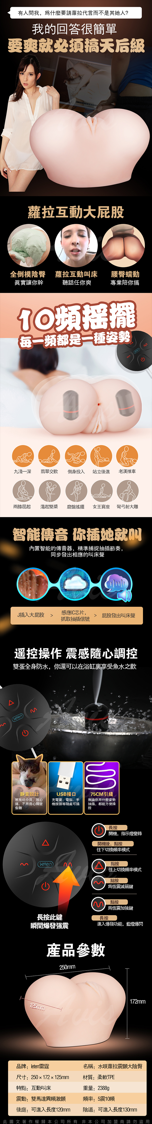 香港LETEN 優皇 水咲蘿拉(瀧澤蘿拉) 1:0.8複製美尻 5x10頻雙震動+真人發音 雙穴仿真大屁股