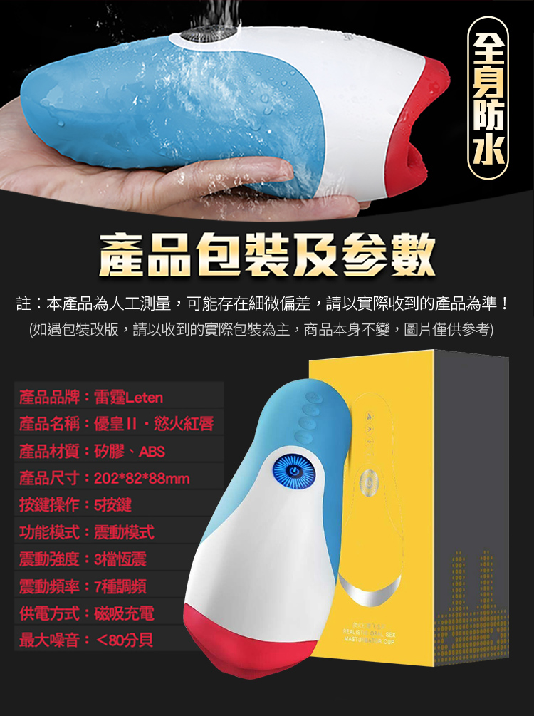 .主商品:LETEN 優皇Ⅱ 2代 慾火紅唇 波多野結衣代言 智能加溫+互動發音 口交男用自慰飛機杯