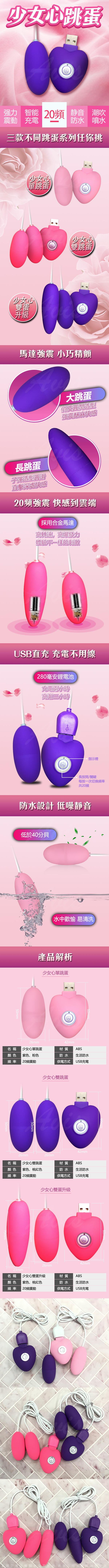 .主商品:少女心USB充電20頻升級長短雙跳蛋 粉