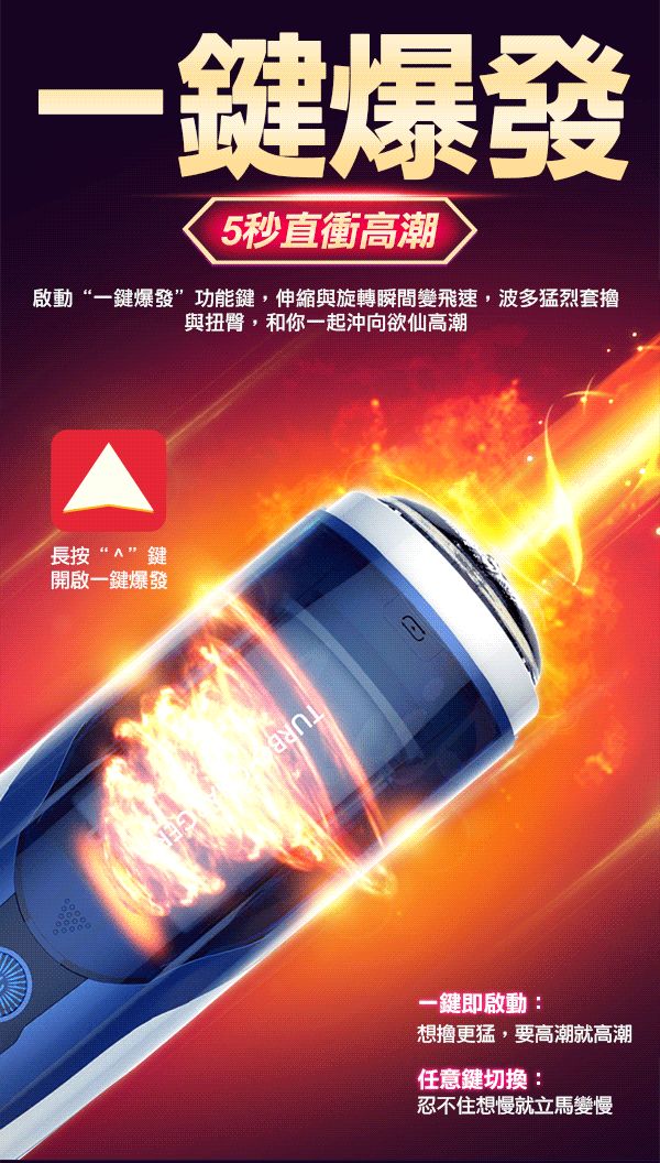 高潮臨界點時開啟,伸縮和旋轉速度都瞬間加大