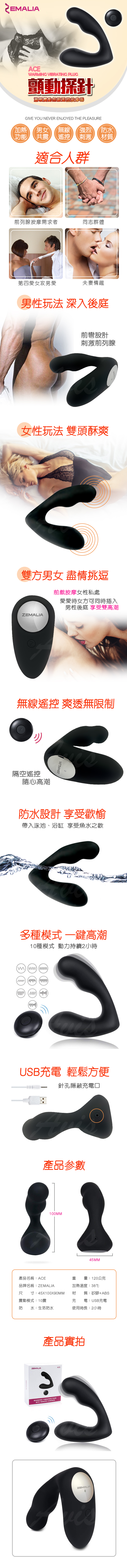 .主商品:Zemalia Ace 溫暖加熱 前列腺 無線遙控震動按摩器 黑