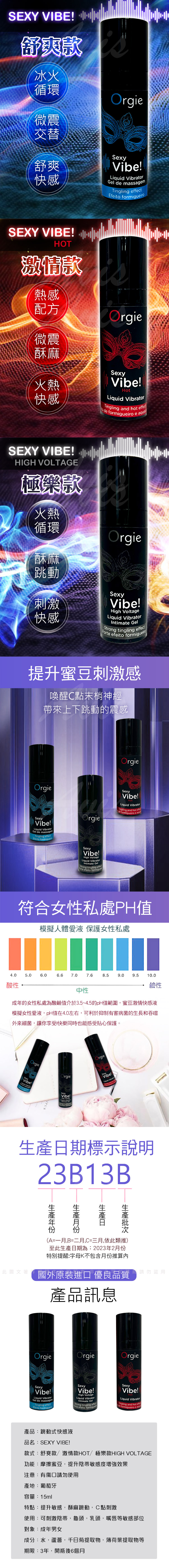 .商品名稱:葡萄牙ORGIE Vibrator Sexy Vibe High Voltage 跳跳糖 跳動式高潮提升凝露 極樂款15ml