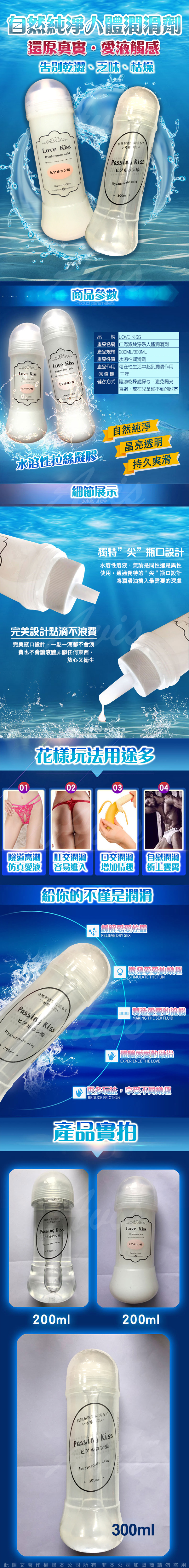 .主商品:LOVE KISS 自然純淨 擬真人體潤滑液 300ml 透明