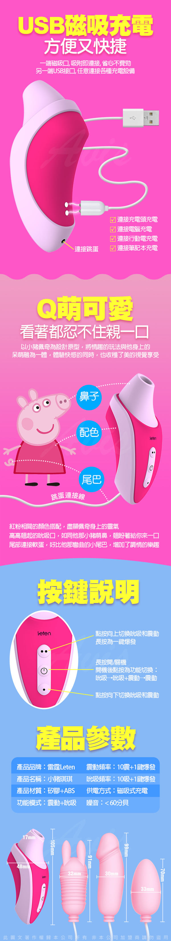 .主商品:LETEN 小豬琪琪 吸吮+跳蛋+震動棒 一機多用 口交吸吮按摩器 女用自慰器