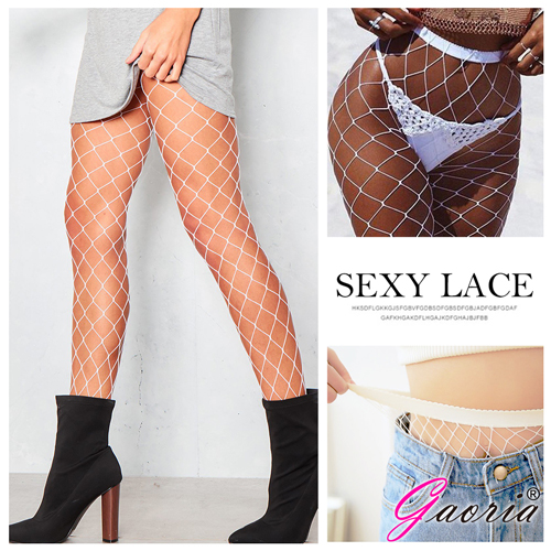 【Gaoria】網眼襪 鏤空連褲襪 牛仔褲打底襪 漁網襪 白 大網