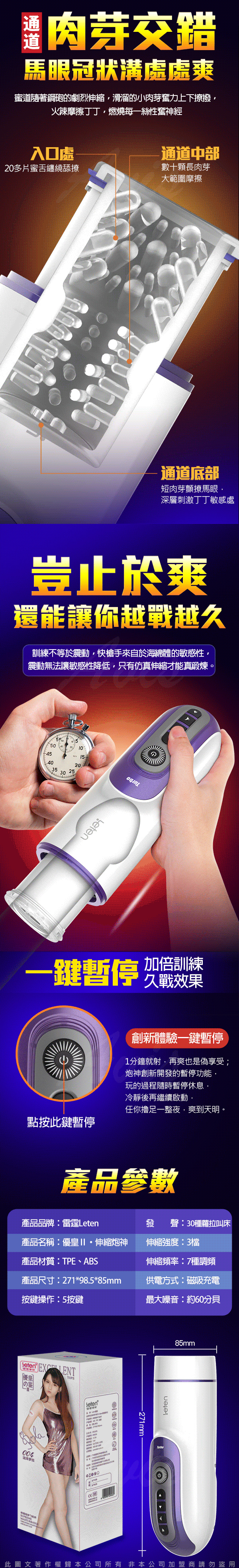 .主商品: LETEN 優皇Ⅱ 2代 伸縮炮神 水咲蘿拉(瀧澤蘿拉)代言 加溫+智能互動發音+伸縮抽插 全自動飛機杯