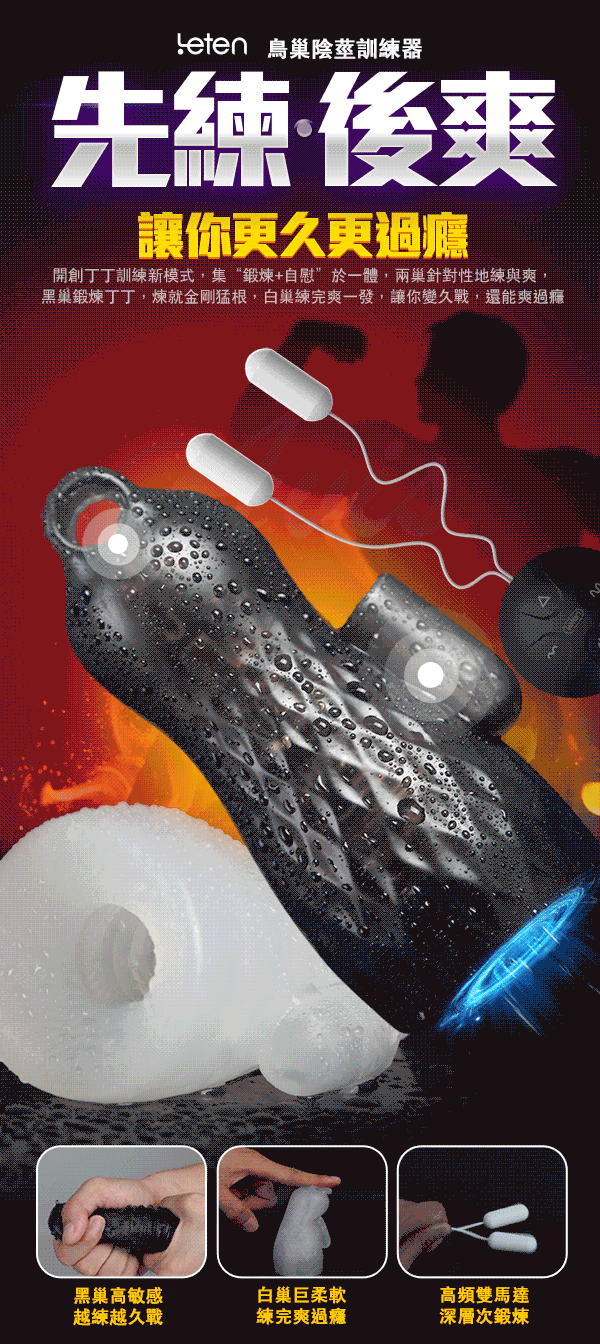 .主商品:Leten 鳥巢 5速10頻陰莖雙震訓練器套裝