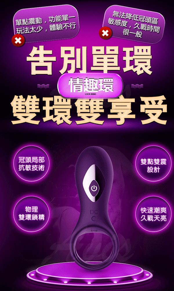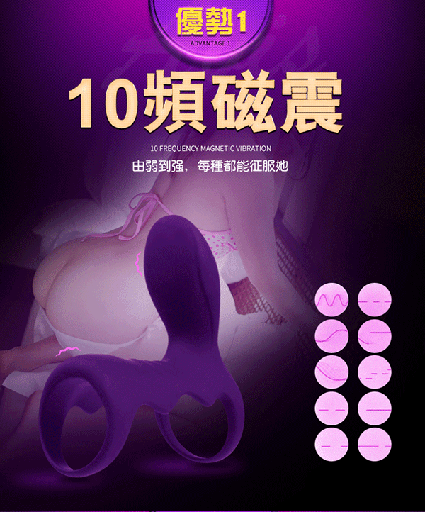 .商品名稱:omysky-虎賁符 雙震10段變頻柔軟矽膠鎖精環-紫色