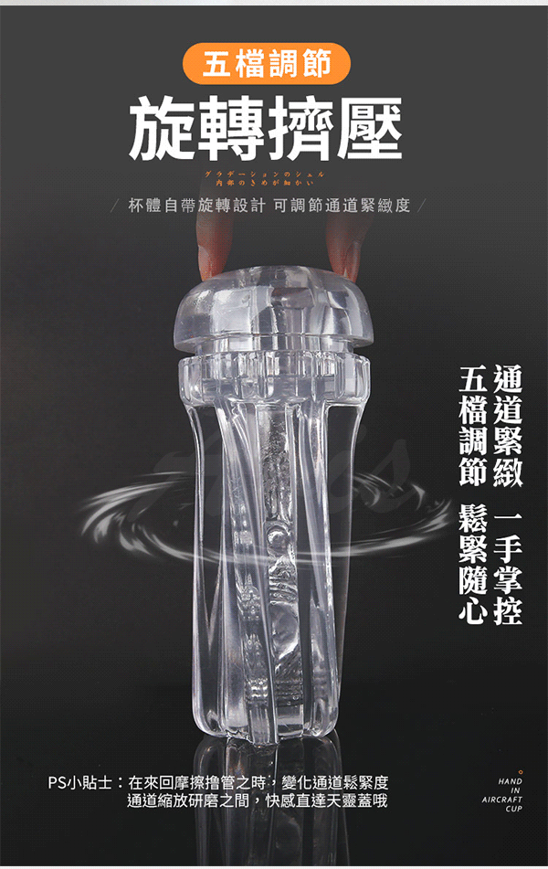 底蓋旋轉設計,鬆緊自由調節,感受被擠壓的快感