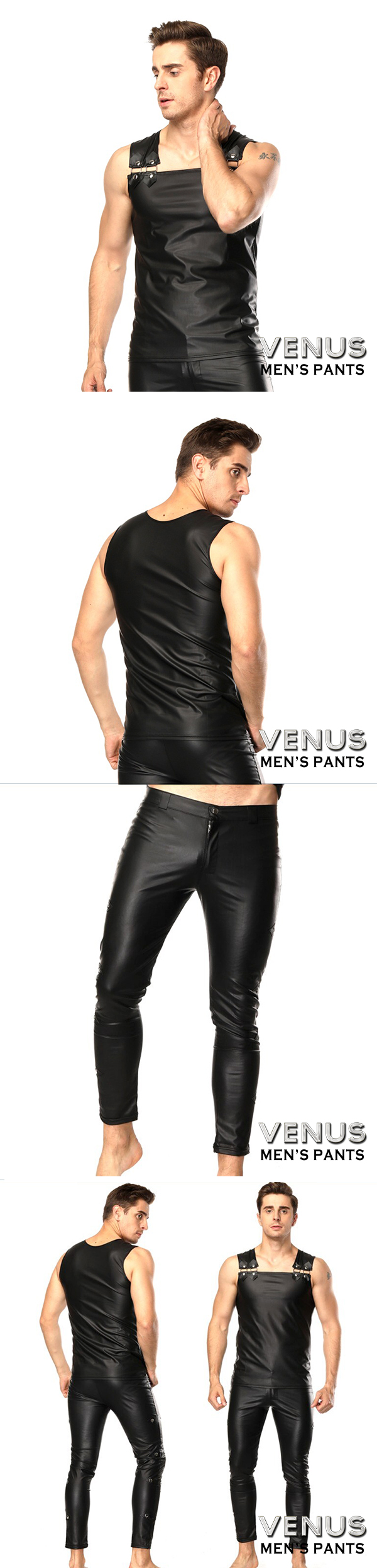 .主商品:CICILY 男士漆皮無袖衣+漆皮長褲 舞台表演衣 摔角衣