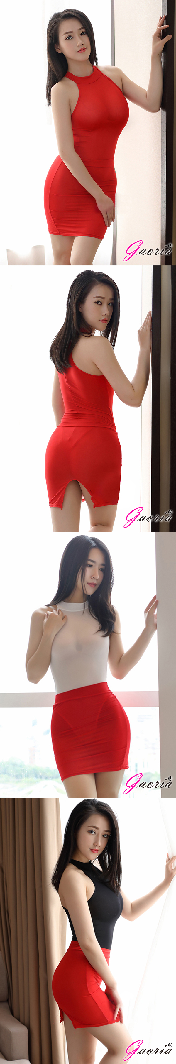 Gaoria 性感絲滑 透明後開叉緊身裙 半身裙 包裙 紅