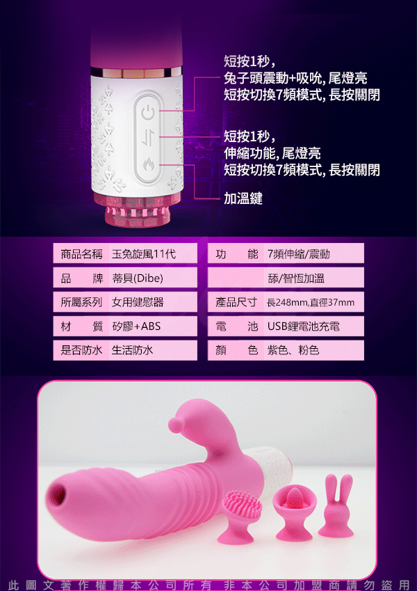 .主商品:Dibe-玉兔11代 舔震吸吮+伸縮 智能加溫 G點高潮按摩棒 附3種頭套