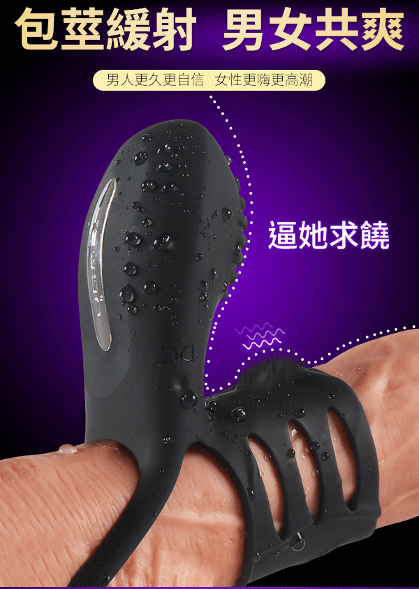.商品名稱:久興-雙震10段變頻柔軟矽膠鎖精環-黑色 遙控款