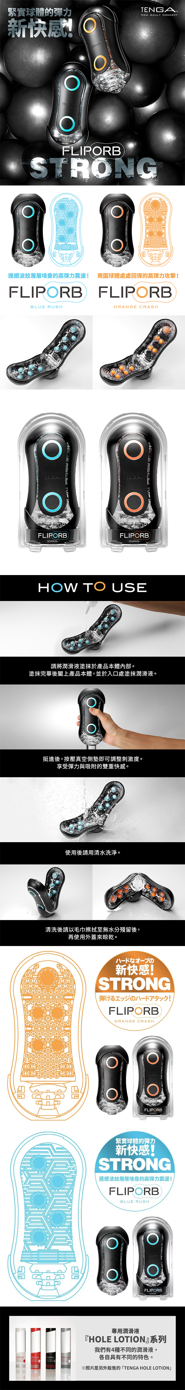 日本TENGA FLIP ORB STRONG 彈力球重複使用型自慰器 BLUE RUSH/激限藍 TFO-001H