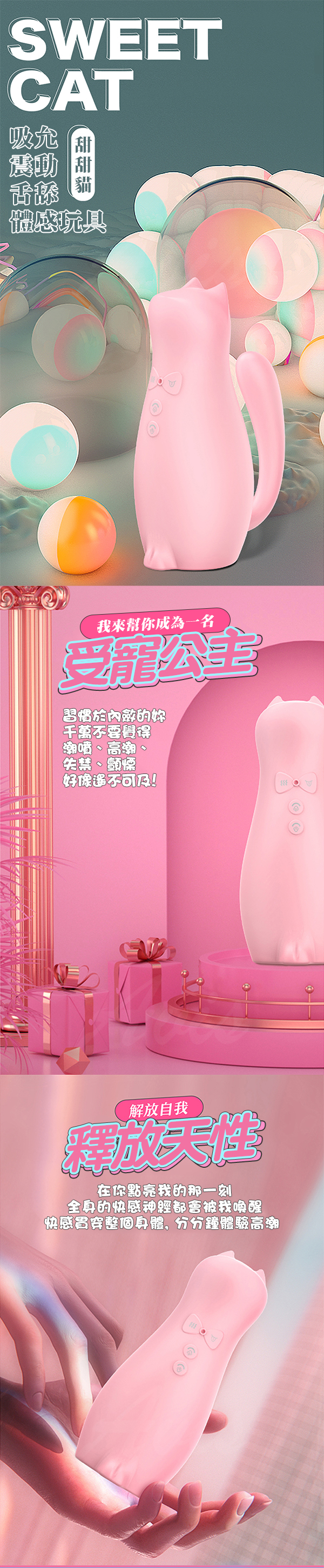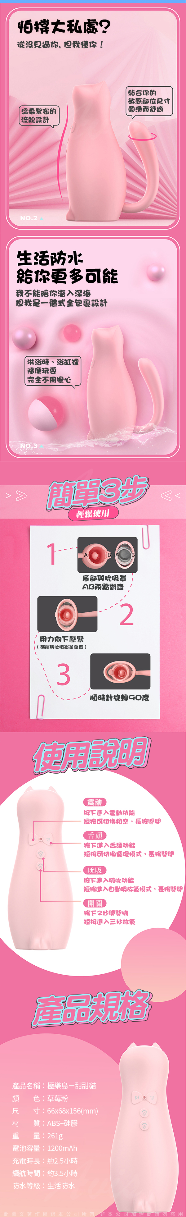 .商品內容:極樂島-甜甜貓 吮吸震動舌舔 情趣女用 舔震器