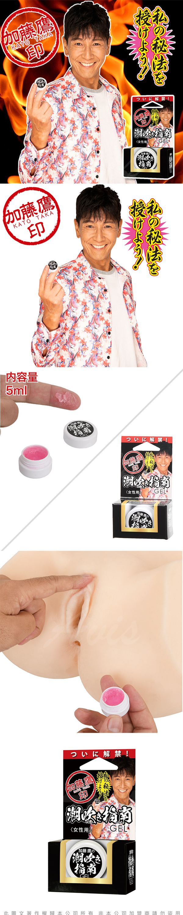 .商品功能:日本進口 加藤鷹印 祕法傳授 潮吹指南 女性催情高潮凝露5ml 女用