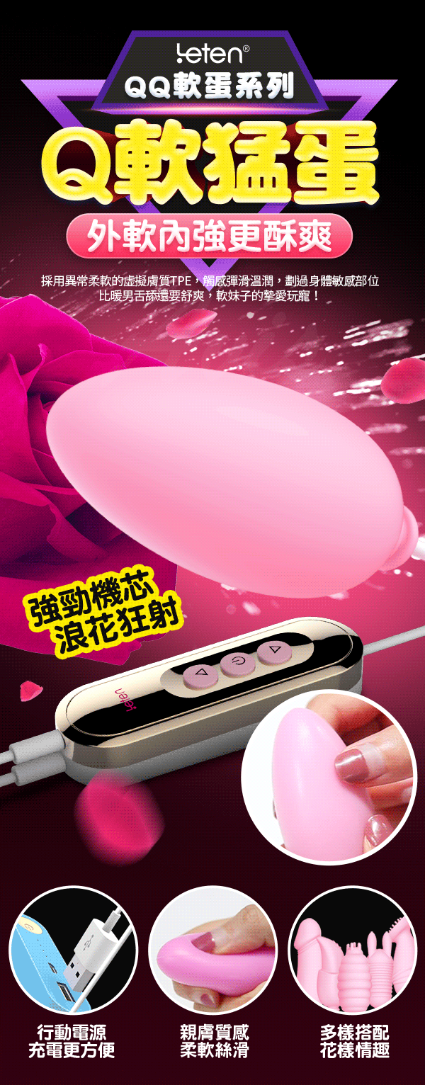 .主商品:Leten-Q軟蛋 USB直充供電隨插即用雙跳蛋-撩撥款